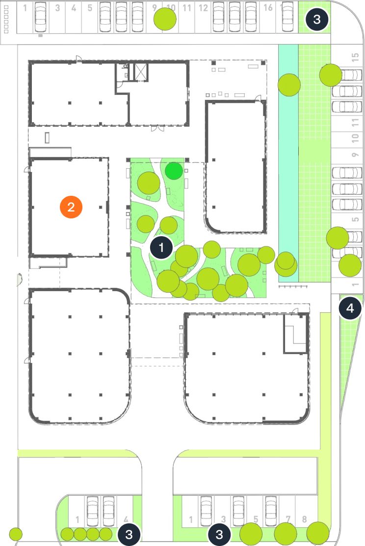 Архітектура GRONO — це більше, ніж просто будівлі. Ми спроєктували наш кампус як сукупність окремих, продуманих зон, кожна з яких має свої унікальні переваги та атмосферу. Такий підхід дозволяє природним чином формувати невеликі, сфокусовані спільноти резидентів зі схожими потребами та стилем роботи